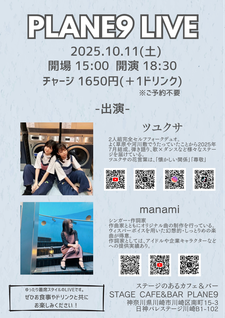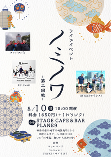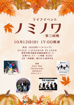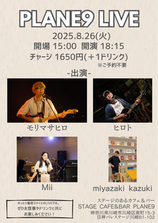 PLANE9対バンイベント「ノミノワ」。今回はバンド編成3組での開催です!
