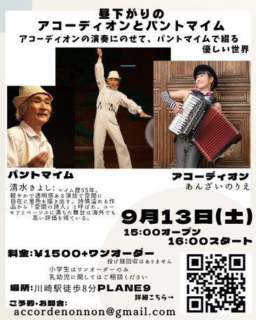 アコーディオンの演奏にのせて、優しいパントマイムの世界
